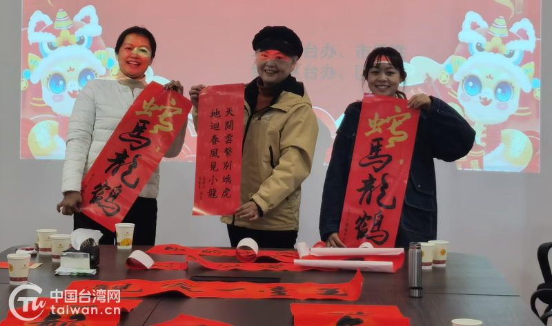 現兩岸同胞血濃于水的深厚情誼,深受臺胞臺商臺屬喜愛。大家紛紛表示,手寫春聯更有年味,也讓他們感受到家鄉的溫暖和關懷。還有臺胞笑著用閩南語交流,感慨“蛇馬龍鶴(什么都好)”,對新一年期許最美好的祝福。
