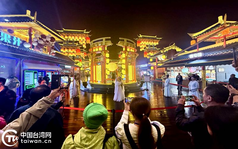 臺灣旅行商們在廣安不夜城里駐足拍照。(中國臺灣網發)
