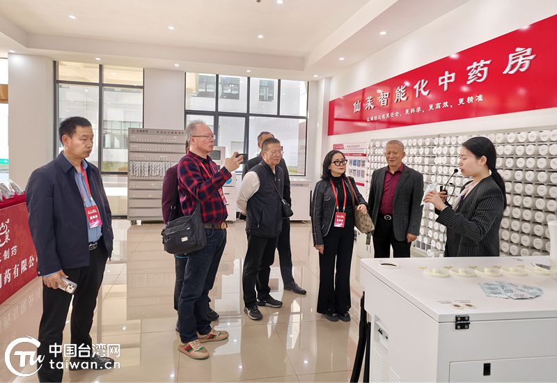 考察團在廣西仙茱制藥有限公司交流。(中國臺灣網發)