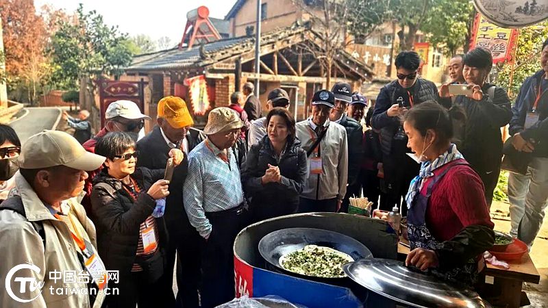 臺灣苗栗縣黃姓宗親會一行在江夏區(qū)小朱灣品嘗特色美食。(中國臺灣網發(fā))