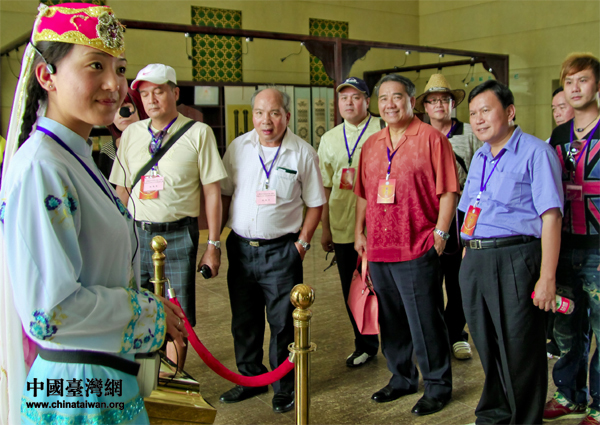 美女解說員為廖國棟(前右三)一行介紹回族文化。(中國臺灣網 陳佳慧 攝)