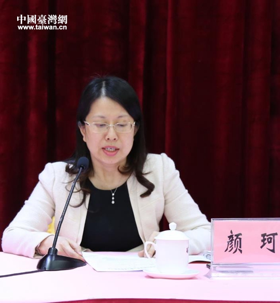 廣東省臺聯(lián)會長顏珂作2017年工作報告。(圖片來源:廣東省臺聯(lián))