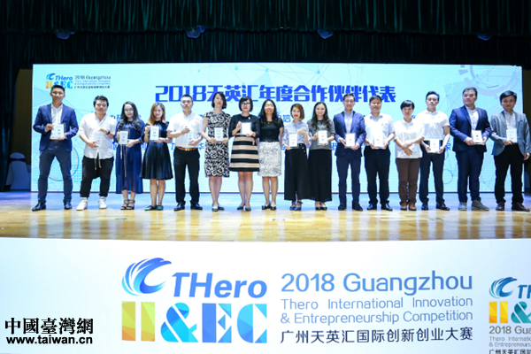 2018廣州天英匯國際創新創業大賽由天河區政府、廣州市科技創新委、廣州市工業和信息化委共同主辦。啟動儀式上,天河區政府根據獎勵政策向2017年大賽落戶項目代表頒發現金支票,Green Life-綠能源鋰電池回收、特殊醫療用途配方食品健康多師共管平臺、錢老板云端平臺、大健康益生菌五層包埋技術等11個獲獎項目作為已確認落戶的臺灣賽區獲獎項目代表上臺接收10萬元的落戶獎金支票。