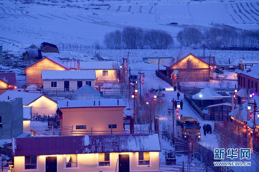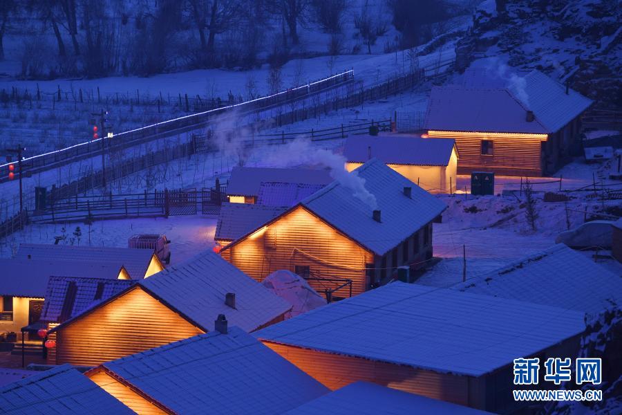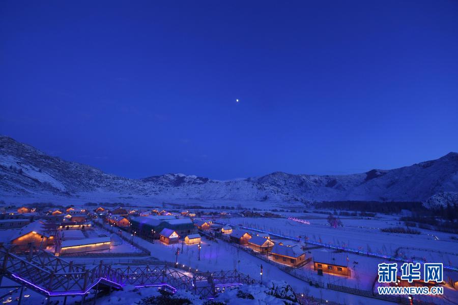 新疆阿勒泰地區(qū)富蘊(yùn)縣可可托海鎮(zhèn)塔拉特村位于額爾齊斯河源頭附近,被譽(yù)為“額河第一村”。冬季夜幕中的塔拉特村,在燈光的映襯下如同冰雪童話世界。