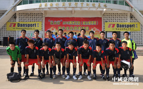 8月11日,“動向杯”2010兩岸五地(桂臺粵港澳)青少年足球邀請賽,在廣西梧州國家體育訓練基地開賽。來自臺灣寶島的高雄市立中正高工足球隊(甲組),成為這次邀請賽的焦點。(中國臺灣網發 廣西臺辦通訊員孟亞西 攝)
