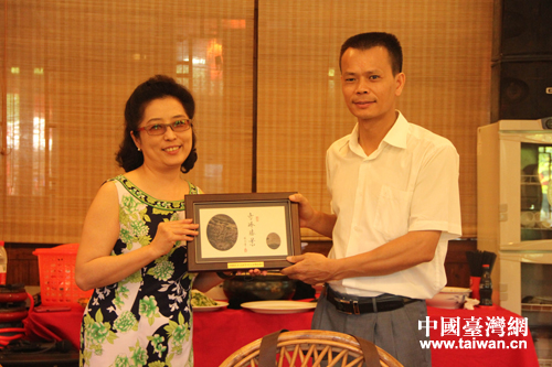 參訪(fǎng)團(tuán)互贈(zèng)紀(jì)念禮物。(圖片來(lái)源:臨桂縣臺(tái)辦)