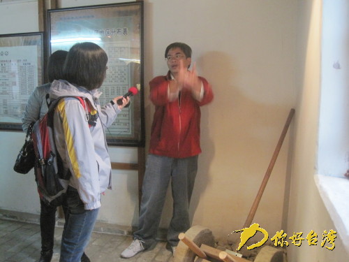客家生態博物館館長胡慶生向記者介紹館內展品(你好臺灣網 圖 )