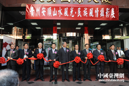 中國臺灣網3月9日安順消息 3月6日下午,由貴州安順市委宣傳部、市委臺灣工作辦公室、市委外宣辦(政府新聞辦),貴州黃果樹集團有限公司與臺灣文化藝術發展促進會,臺灣大安國際股份有限公司,臺灣日出藝術公司聯合舉辦的“貴州安順山水風光、民族風情360度大型攝影展”在臺灣臺中市忠明南路大安國際大廈隆重開幕。