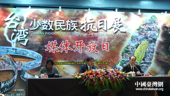 全國臺聯(lián)23日在北京舉行臺灣少數(shù)民族抗日史實圖片展媒體說明會,介紹展覽情況(中國臺灣網(wǎng) 李徽 攝)