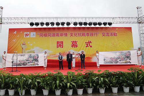 晏永和宣布活動(dòng)開(kāi)幕。王銘暉在致辭中說(shuō),在宜賓李莊隆重舉行“同根同源兩岸情?文化抗戰(zhàn)李莊行”主題活動(dòng),共同舉紀(jì)念中國(guó)人民抗日戰(zhàn)爭(zhēng)暨世界反法西斯戰(zhàn)爭(zhēng)勝利70周年,有著特別的意義。70多年前,在民族危亡的關(guān)鍵時(shí)刻, 處于西南邊陲的古鎮(zhèn)李莊發(fā)出“同大遷川,李莊歡迎;一切需要,地方供給!16字電文,從此義無(wú)反顧地肩負(fù)起了文化救國(guó)的歷史重任,用博大胸懷和氣量接納了中國(guó)國(guó)立中央研究院、中央博物院等科研院所學(xué)校,以及梁思成、林徽因、李濟(jì)、傅斯年、董作賓等一批學(xué)術(shù)大家和無(wú)數(shù)的革命知識(shí)分子。李莊在抗戰(zhàn)中錘煉出的愛(ài)國(guó)主義精神、抗戰(zhàn)必勝的信念、矢志求真的毅力、民族復(fù)興的壯志等寶貴的精神財(cái)富,正在兩岸同胞代代相傳,也因?yàn)檫@份深深的李莊情節(jié),將內(nèi)陸城市宜賓與臺(tái)灣同胞緊緊地聯(lián)系在了一起。雙方交流合作不斷加強(qiáng),經(jīng)濟(jì)聯(lián)系日益密切,文化交流更趨活躍。希望以此為契機(jī),共同把李莊打造為兩岸文化交流的又一個(gè)重要基地,為弘揚(yáng)傳承李莊抗戰(zhàn)文化精神作出新的更大貢獻(xiàn)。