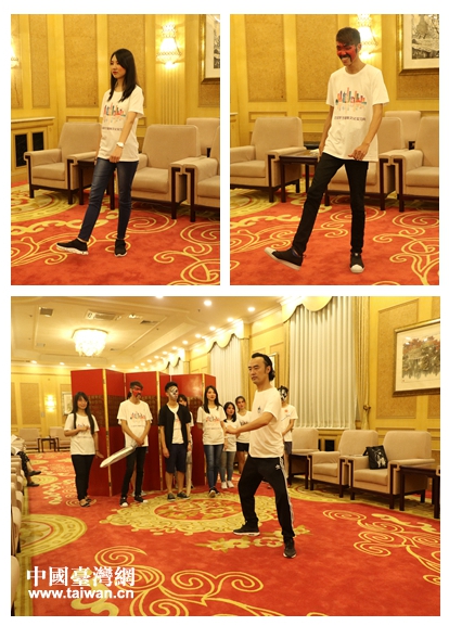 兩岸青年一起學習京劇招式。(中國臺灣網 趙苗青 攝)