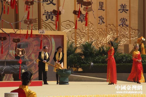 蔣孝嚴夫婦敬獻頭香。(圖片來源:河南省臺辦)