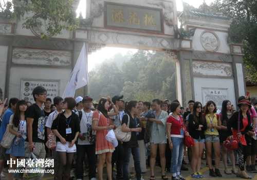 中國(guó)臺(tái)灣網(wǎng)9月4日常德消息 日前,1600多年前東晉大詩(shī)人陶淵明描繪令人心馳神往的人間仙境桃花源,迎來(lái)了參加2012年第十二屆湖湘文化之旅“青春兩岸行·牽手桃花桃”活動(dòng)的臺(tái)灣清華大學(xué)、臺(tái)灣大學(xué)、臺(tái)灣文化大學(xué)、臺(tái)灣政治大學(xué)等30多所大學(xué)的青年學(xué)生,在這里進(jìn)行“青春兩岸行·牽手桃花源”文化之旅活動(dòng)。(中國(guó)臺(tái)灣網(wǎng)常德市臺(tái)辦通訊員 龐廷禹 薛安團(tuán))