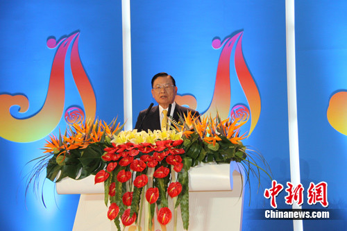 ;鶗麻L江丙坤在第六屆臺商論壇開幕式上發(fā)表演講。攝影:杜國峰