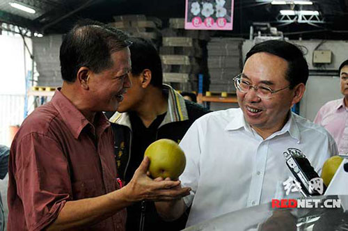 湖南和苗栗的情誼,今后將通過農(nóng)業(yè)經(jīng)濟(jì)等領(lǐng)域的合作,讓兩地百姓互惠而得以繼續(xù)。正在臺(tái)灣參訪的中共湖南省委副書記梅克保今天走訪苗栗農(nóng)會(huì),他表示歡迎農(nóng)會(huì)帶技術(shù)來湖南辦農(nóng)場,或通過直銷把苗栗水果帶到湖南。隨行的湖南省連鎖商業(yè)協(xié)會(huì)會(huì)長胡子敬亦當(dāng)場表態(tài),將全力以赴,組織湖南超市設(shè)立臺(tái)灣卓蘭鎮(zhèn)水果專柜。