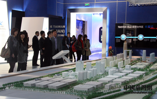 8日上午,“面向大!獌砂睹襟w江蘇沿海行”聯(lián)合采訪抵達活動最后一站——昆山。兩岸記者先來到了剛剛在“江蘇臺灣周”上啟動的海峽兩岸(昆山)商貿(mào)合作區(qū)進行參觀采訪。隨后,昆山市副市長黃健會見了兩岸媒體采訪團,昆山花橋經(jīng)濟開發(fā)區(qū)管委會副主任唐乃新向兩岸記者介紹了海峽兩岸(昆山)經(jīng)貿(mào)合作區(qū)的相關(guān)情況。