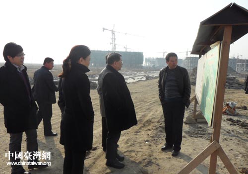 考察團一行在盤錦市盤山縣一工地現(xiàn)場考察(圖片來源:盤錦市臺辦)