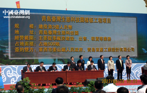 江丙坤董事長在揭牌儀式致辭,對青島臺灣生態科技園揭牌表示祝賀。萊西市委副書記、市長孫利國向來賓介紹了萊西市情況和青島臺灣生態科技園發展規劃。揭牌現場舉行了內外資項目集中簽約。
