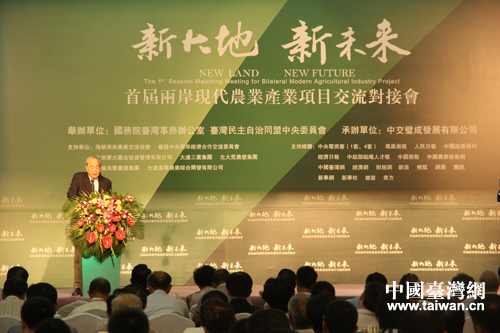 中國臺灣網8月11日大連消息 10日,由國務院臺辦、臺盟中央聯合舉辦,由中交壁成發展有限公司承辦的“首屆兩岸現代農業產業項目交流對接會”在大連盛大開幕,自10日起本次大會將在大連、長春、哈爾濱三個城市連續舉辦。