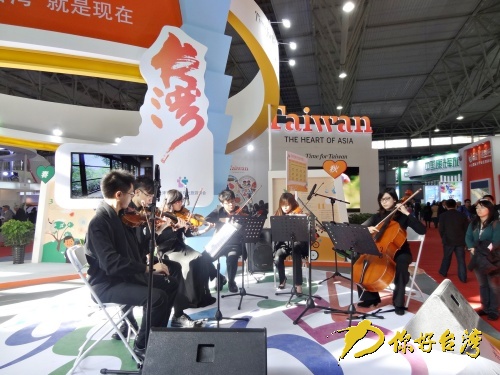 此次旅交會(huì)現(xiàn)場(chǎng),臺(tái)灣館系以創(chuàng)新展攤設(shè)計(jì)手法,展現(xiàn)“臺(tái)灣觀光年歷”主題活動(dòng),及“臺(tái)灣好行”、“臺(tái)灣觀巴”等臺(tái)灣豐富多元的觀光資源,也充分表達(dá)臺(tái)灣推動(dòng)團(tuán)客優(yōu)質(zhì)行程及個(gè)人自由行兩大主軸的鮮明意象,參觀展覽的民眾均相當(dāng)熱絡(luò)的向臺(tái)灣館服務(wù)人員索取資料,及咨詢臺(tái)灣旅游訊息;另臺(tái)灣館也結(jié)合臺(tái)灣參展代表團(tuán)及表演團(tuán)體,擴(kuò)大營(yíng)銷宣傳力度,還特地從臺(tái)灣邀請(qǐng)?jiān)诘貙耀@殊榮的“樂興之時(shí)”室內(nèi)樂團(tuán)在展場(chǎng)現(xiàn)場(chǎng)定時(shí)表演,帶來(lái)具有臺(tái)灣特色的名謠演奏,悠揚(yáng)樂聲伴隨會(huì)場(chǎng)熱絡(luò)交流,將氣氛帶到最高點(diǎn),深獲參觀民眾一致好評(píng)。