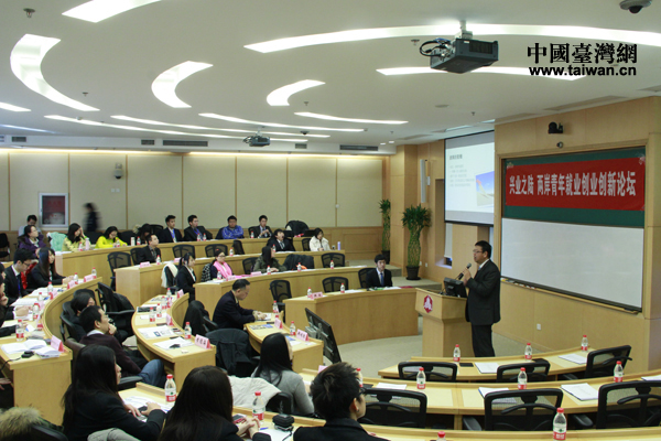 中國臺灣網1月21日北京消息 1月21日上午,由清華大學學生海峽兩岸交流協會舉辦的“興業之陸兩岸青年就業創業創新論壇”在清華大學金融學院舉行。本次論壇主要圍繞兩岸青年共同面對的職業發展問題,結合臺生在陸就業情況等探討兩岸就業創業環境、新興產業發展及青年創新等議題。