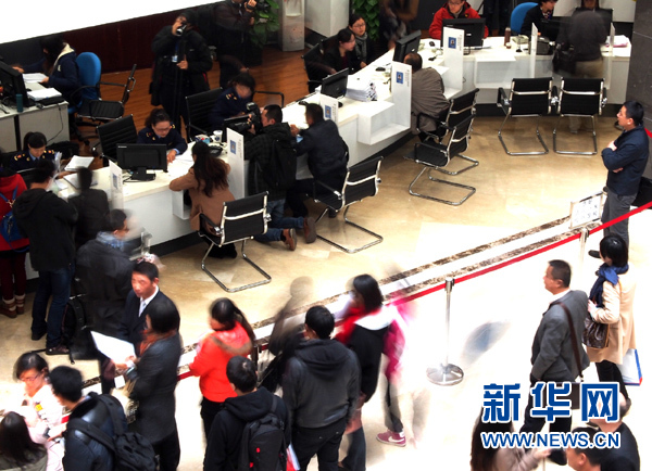 2013年12月4日,上海自貿區綜合服務大廳內人頭攢動。(新華社記者 陳飛 攝)