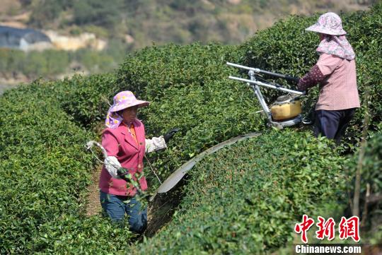 圖為鴻鼎的茶葉生產基地,工人忙著剪枝。 張斌 攝