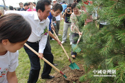 中國臺灣網7月17日北京消息 今天上午,“京臺青年友誼林”揭幕儀式在北京奧林克公園北區舉行。歡笑聲中,兩地師生600余人與一身便裝的海協會會長陳云林一同揮汗,種下象征兩岸友誼地久天長的松樹。