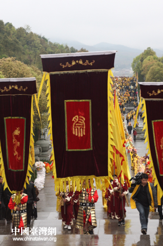 辛卯年清明海峽兩岸祭祀炎帝神農(nóng)氏大典4月3日在湖南炎陵縣炎帝陵舉行。190余名參加第二屆在臺湘籍后裔湖南行的在臺湘籍人士參加了祭祀典禮。(中國臺灣網(wǎng) 楊麗 攝)