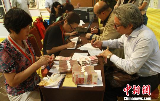 8月20日下午,北京臺資企業協會在北京臺灣會館舉辦為"8·12"天津濱海新區爆炸事故捐款的活動。圖為北京臺資企業相關人士在現場捐款。 張曉曦 攝