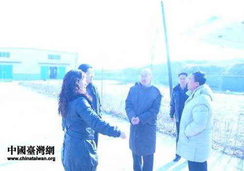 喀左縣政府領(lǐng)導(dǎo)在平房子鎮(zhèn)領(lǐng)導(dǎo)的陪同下慰問臺企(圖片來源:喀左縣臺辦)