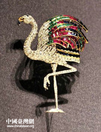 此次展覽共展出珠寶文物466件,臺北故宮160件、沈陽故宮74件、卡地亞典藏232件,其中沈陽故宮展出的清代婉容皇后“鳳凰珍珠發簪”和“透雕雙喜翡翠墜”,卡地亞典藏展出的溫莎公爵夫人“火鶴胸針”和比利時伊莉莎白女皇“渦卷式頭冠”極具歷史價值,為東西方皇室珠寶文化的代表。