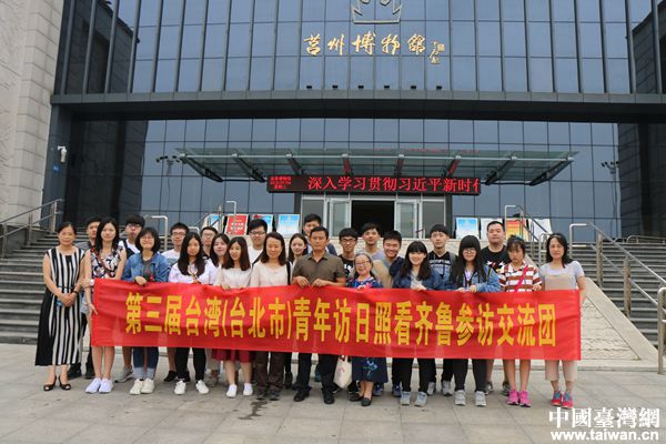 中國臺灣網7月12日日照訊 7月4日至6日,第三屆臺灣(臺北市)青年訪日照看齊魯參訪交流團21位臺灣大學師生,在臺灣銘傳大學洪靜嫻教授和龍華科技大學黃子晉主任的帶領下到莒縣、泰安、曲阜等地參訪交流,了解傳承中華優秀傳統文化。