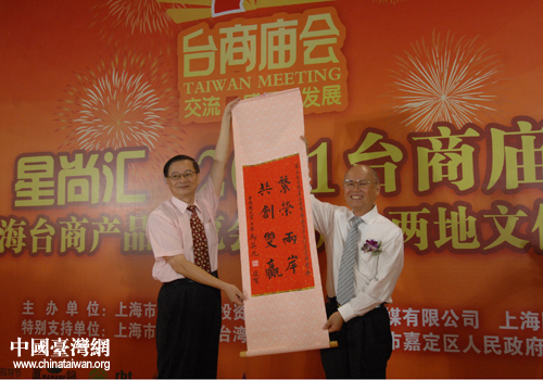 上海臺商廟會開幕 馬英九江丙坤題詞祝賀(圖)