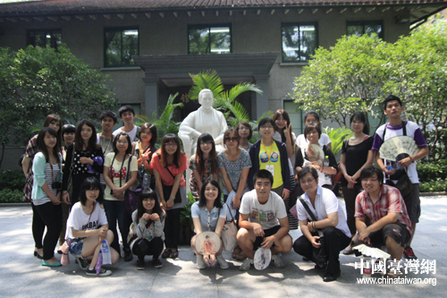 8月14日,由中國宋慶齡基金會(huì)和臺(tái)灣“十大杰出青年基金會(huì)”共同組織的“臺(tái)灣青年學(xué)生交流團(tuán)”活動(dòng)開始參訪上海。圖為交流團(tuán)在上海宋慶齡故居雕像前合影留念。(中國臺(tái)灣網(wǎng) 孟雅詩 攝)