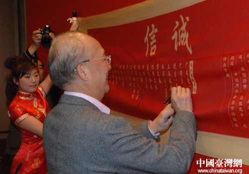 參與誠信經(jīng)營倡議活動的臺商在倡議書上簽名。(上海市臺辦 葛鳳章 攝)