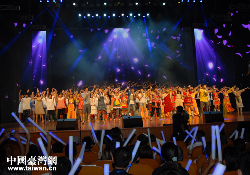 演出結束,臺灣營員和上海大學生們一起合影,大家歡呼雀躍,擺出各種“pose”,興奮的照片拍了一張又一張,把這精彩的歷史瞬間永遠定格,把這珍貴的友誼彼此珍藏心間。(中國臺灣網上海市臺聯通訊員 王茜)