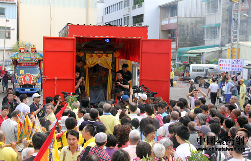 臺(tái)灣信眾熱情迎接山西關(guān)公祖廟圣像圣駕。(中國(guó)臺(tái)灣網(wǎng) 李典典 攝)