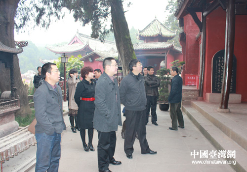 遂寧市委臺辦考察團參觀梓潼縣七曲山大廟。(圖片來源:綿陽市臺辦)