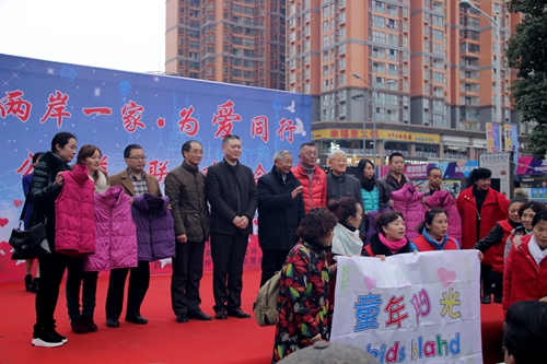 中國臺灣網12月30日綿陽訊 12月24日,綿陽大潤發超市門前的長虹國際廣場上人頭攢動,熱鬧非凡,由綿陽市臺辦指導,綿陽市臺商協會主辦,綿陽市臺胞臺屬聯誼會、微愛陽光義工聯兒童希望基金會協辦的“兩岸一家·為愛同行”主題公益聯歡活動在此舉行;顒訁⑴c者近百人,觀看民眾達千人。