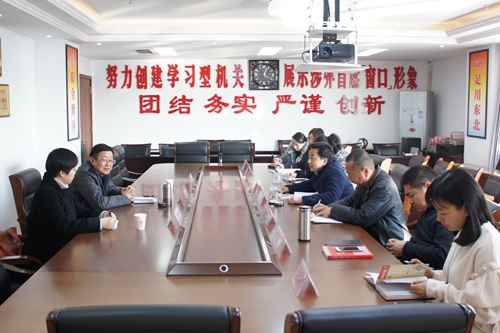 四川省臺(tái)辦副巡視員楊志學(xué)(左二)與南充市臺(tái)辦座談