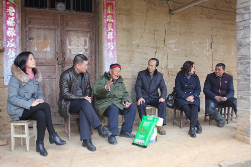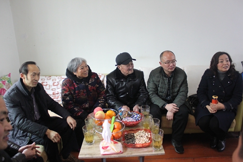 慰問現(xiàn)年96歲的臺灣老兵盧鳳陽(左三)