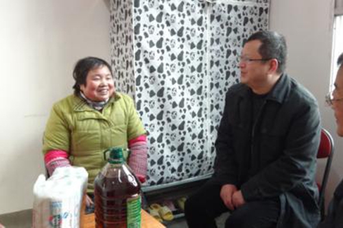 廣元市臺辦主任何自力(中)走訪慰問困難臺屬肖華瓊(左一)