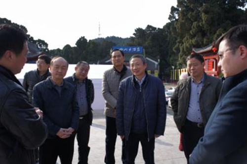 四川省臺辦主任周敏謙(右三)在綿陽梓潼縣七曲山實地考察“第三屆海峽兩岸文昌文化交流活動”籌備工作