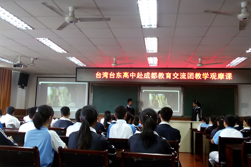 中國臺灣網(wǎng)5月27日成都訊 5月25日,由臺灣臺東縣婦聯(lián)會主任委員、臺灣健康家庭文教基金會董事長陳憐燕女士率領(lǐng)的臺東教育參訪團一行29人到成都市鐵路中學校開展教育交流。參訪團成員大都為臺東高中學校高中三年級學生,他們參觀了成都市鐵路中學校校園,在操場共同體驗傳統(tǒng)體育魅力,觀摩英語、化學課堂授課,開展教學管理與校園文化建設(shè)互動交流。