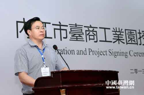 省臺辦張軍副主任宣讀省政府辦公廳關于內江建立臺商工業園的批復。(內江市臺辦供圖)