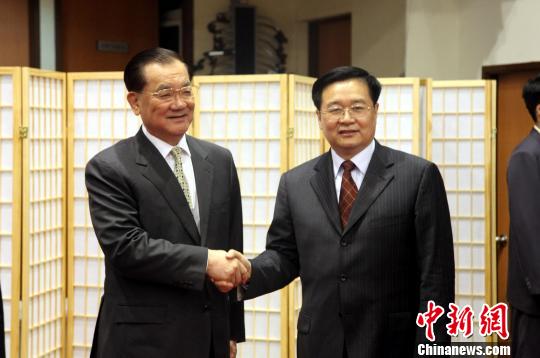 5月7日下午,湖北省代表團(tuán)來臺(tái)參訪抵達(dá)桃園機(jī)場(chǎng)。部分成員隨后即前往國民黨智庫,會(huì)見中國國民黨榮譽(yù)主席連戰(zhàn)等。圖為中國國民黨榮譽(yù)主席連戰(zhàn)(左)會(huì)見湖北省省長王國生。陳立宇 攝