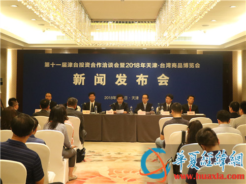 第十一屆津臺(tái)投資合作洽談會(huì)暨2018年天津·臺(tái)灣商品博覽會(huì)新聞發(fā)布會(huì)現(xiàn)場(chǎng)。(華夏經(jīng)緯網(wǎng)王亞靜 攝)