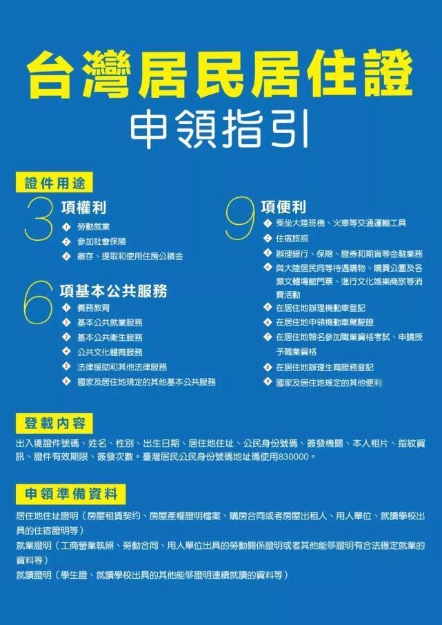 申領指引:臺灣居民居住證申領指引(圖片文檔)