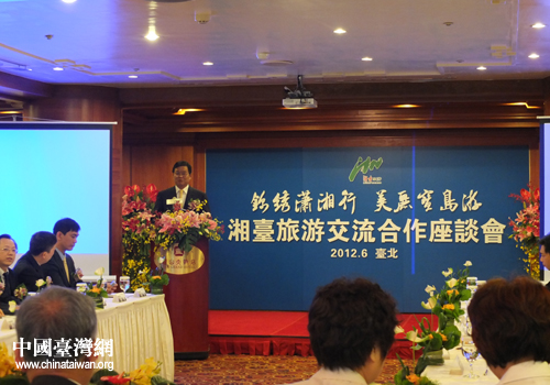 中國(guó)臺(tái)灣網(wǎng)6月14日臺(tái)北消息 6月13日下午,湖南省人民政府在臺(tái)北圓山大飯店舉行主題為“錦繡瀟湘行 美麗寶島游”的湘臺(tái)旅游合作座談會(huì)。湖南省旅游局、湖南省五家具備赴臺(tái)旅游組團(tuán)資質(zhì)的旅行社負(fù)責(zé)人與臺(tái)灣海峽兩岸觀光旅游交流協(xié)會(huì)、臺(tái)灣觀光協(xié)會(huì)等臺(tái)灣業(yè)界負(fù)責(zé)人共80人出席座談會(huì)。